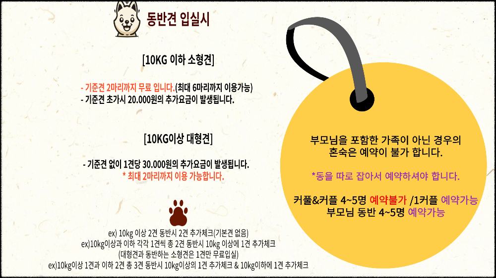 ※ 대형견은 1호 삼식만 예약 가능합니다.