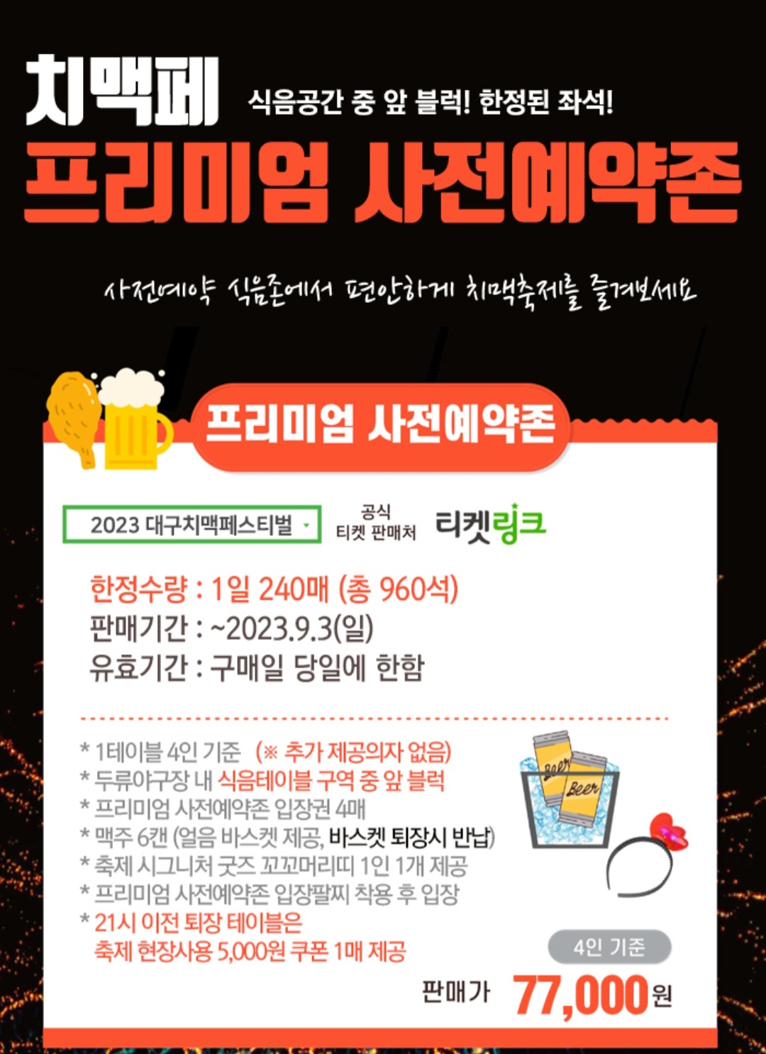[티켓링크] 2023 대구치맥페스티벌 <프리미엄 사전예약존>