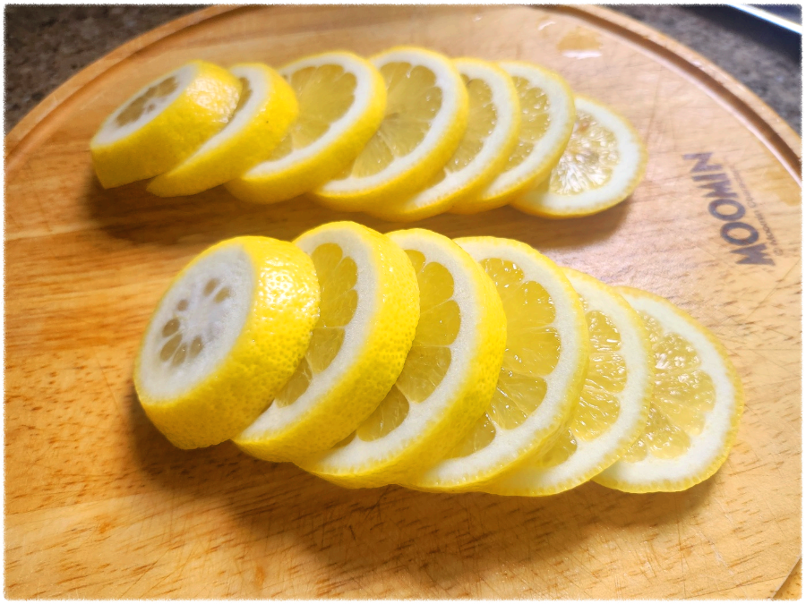 ▶슬라이스 한 레몬을 넣어서 3분 정도 우려 주세요.