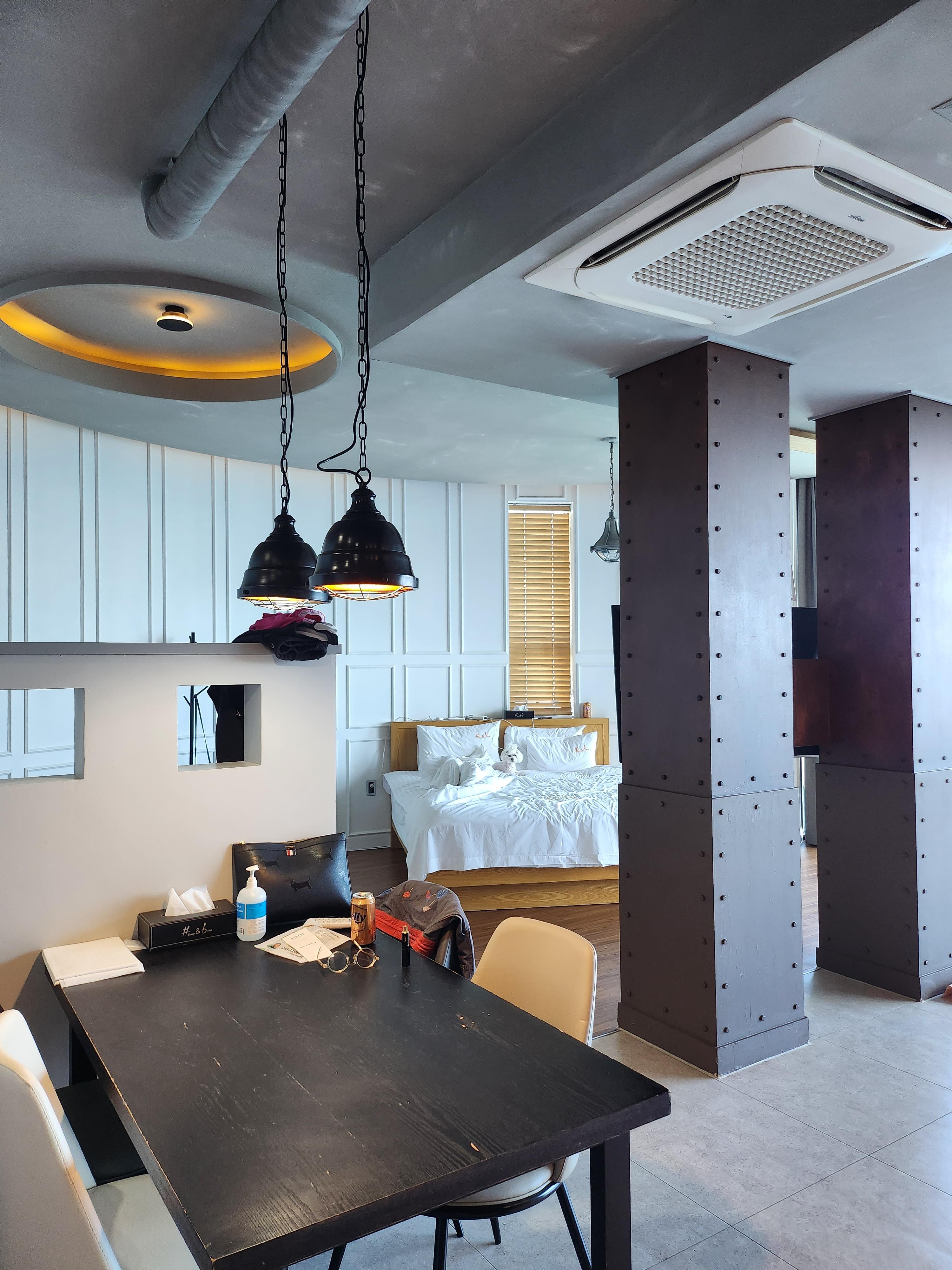 내부에 공기청정기가 있고 통창이라 금방 환기가 되어서 불편함은 없었어요.